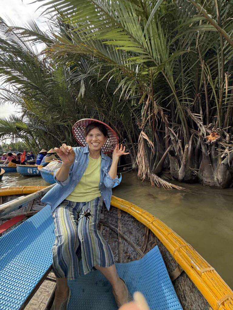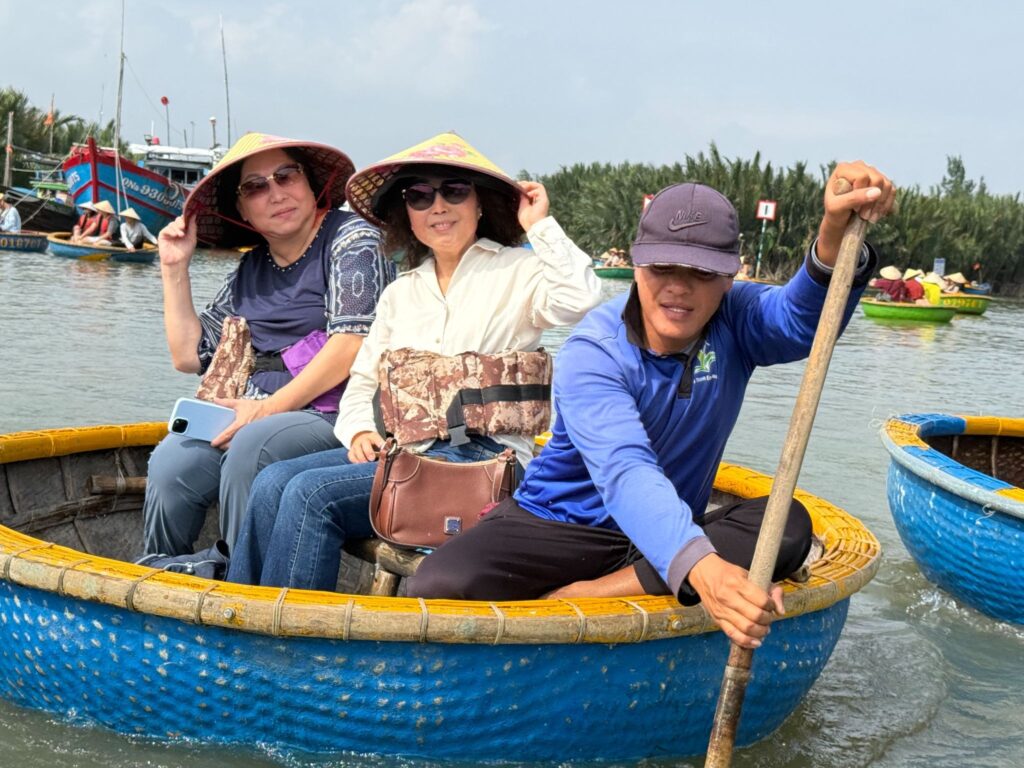 古樸的會安古城更是讓人流連忘返。17–18 世紀時,會安是重要的國際貿易港,因此匯聚了多元文化:有中國會館、日本橋與充滿法式風情的街道。夜晚燈籠高掛,五彩繽紛,浪漫又夢幻,別具特色。迦南島的水椰林體驗竹簍船(碗公船),以及在岸邊釣螃蟹,也都成為難忘的旅遊回憶。難怪有團員特別喜歡中越的山水景致。